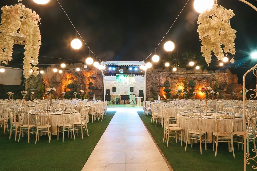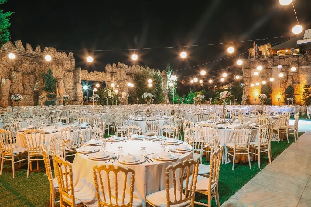 Kır Bahçesi (Açık Alan): 100 – 1.000 kişi kapasite ile romantik kır düğünleri için ideal.